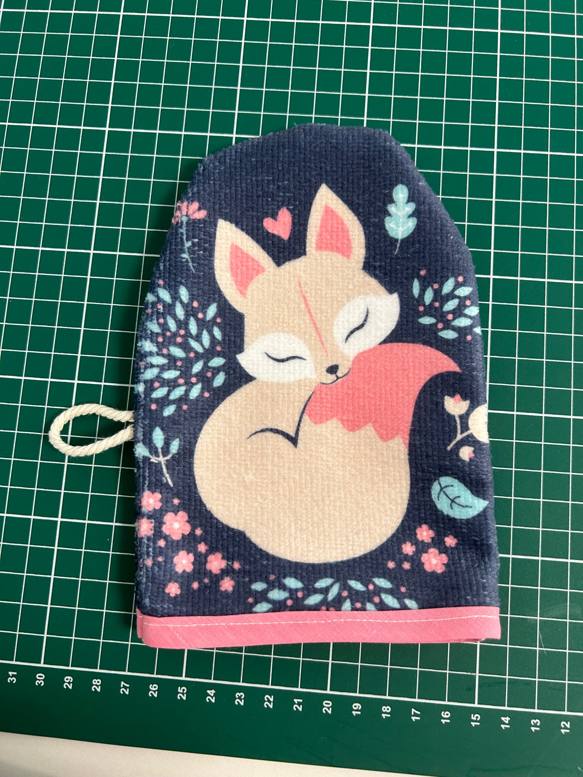 Gant de toilette renard rose et bleu